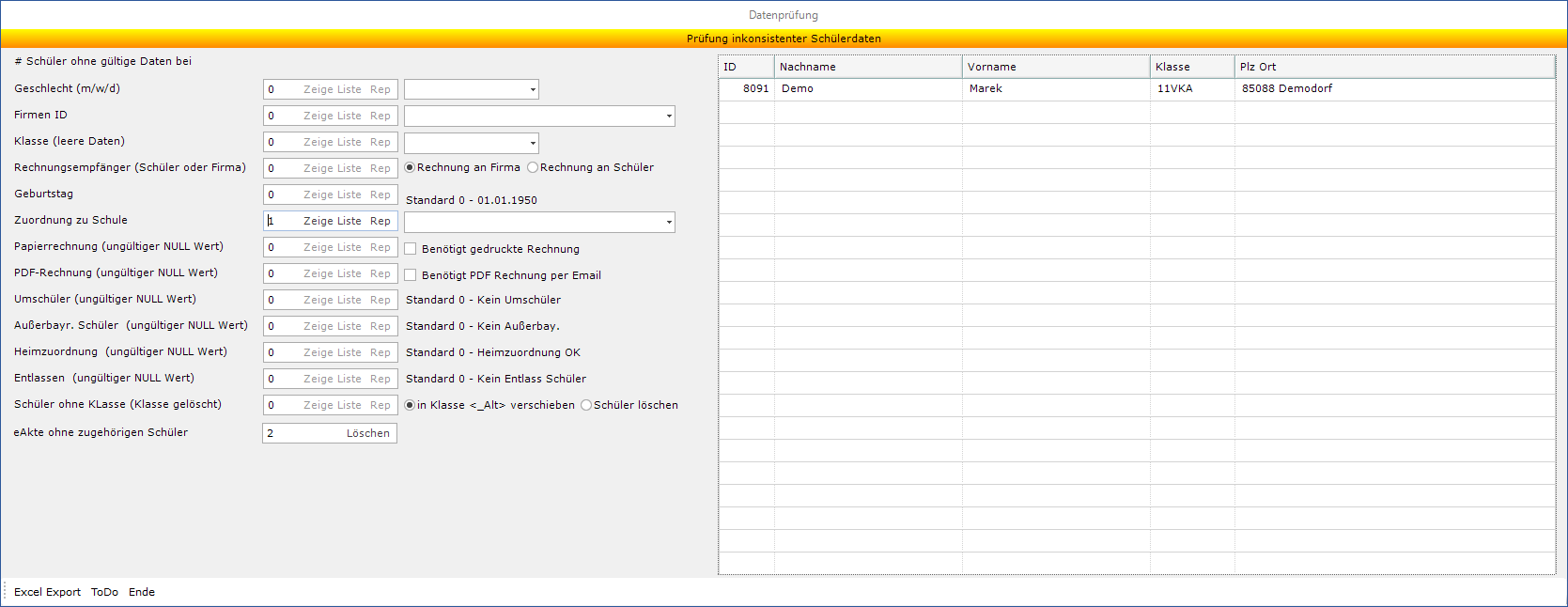 In diesem Beispiel werden die Schüler ohne Zuordnung zu einer Schule der Schule "Berufsschule Musterhausen" zugeordnet.