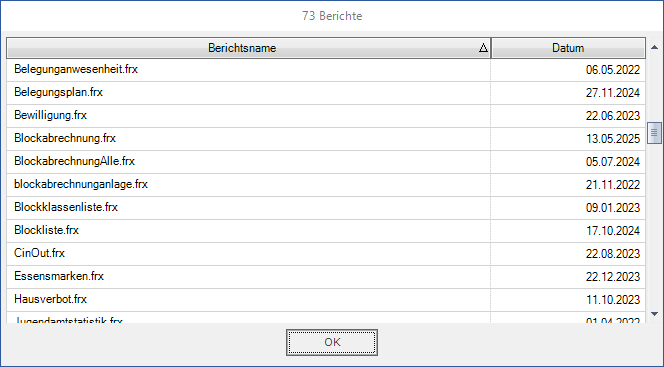 Hier werden alle sich auf dem System befindlichen Berichte / Formulare aufgelistet.
